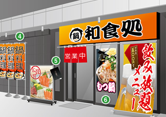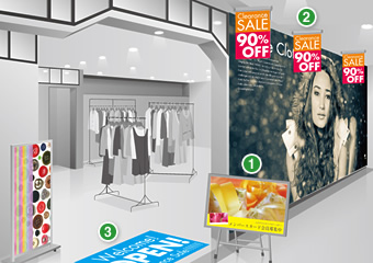 内製化する販促物例ポスター、のぼり、POPなど、お客様をひきつけ、販促効果を上げる