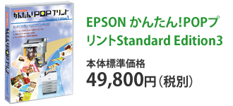 エプソンからは「かんたん!POPプリント」には、ポスターやのぼり、札、台説といったPOP類を簡単に作る為の機能が満載で、初心者からでもデザイン制作、印刷ができる、誰もが使いやすいソフトウェアです。