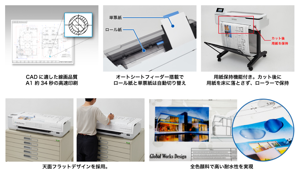 - 脚のないコンパクトモデル。机や台の上でも設置可能な大型プリンター。