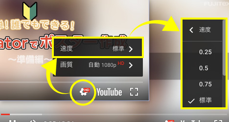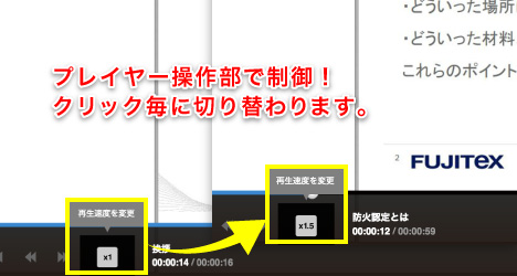 動画を再生された際、少し早めて見たい場合は、下記の手順で再生速度を上げる事ができます。